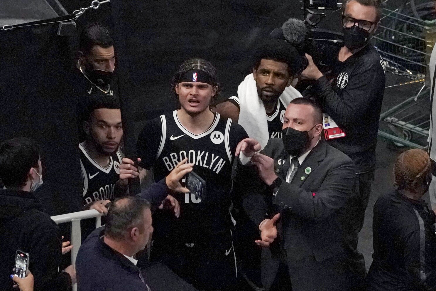 Boston Police detained a fan after he threw a water bottle at NBAs Brooklyn Nets star Kyrie Irving as he was was leaving the court. Fans have barely been allowed back at games and. After the Nets Game 4 win in Boston video emerged showing a fan throwing a water bottle at Kyrie Irving.